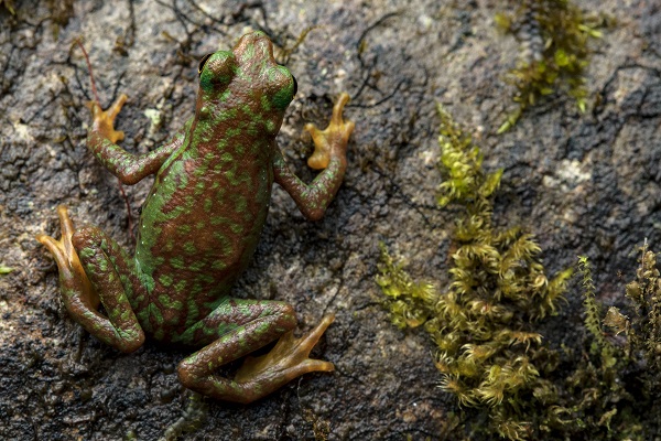 Como muchos de sus parientes, el jambato de Mindo es sorprendente. Es de color marrón con manchas verdes, vientre rojizo con manchas blancas o amarillas, cuerpo alargado y extremidades cortas, según el sitio especializado en anfibios Bioweb.